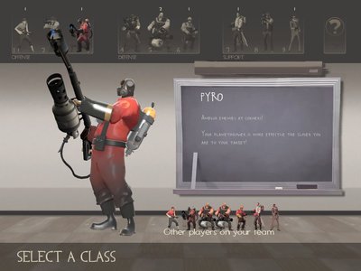 Es difícil empezar a hablar de las muchas virtudes de TF2. Es probablemente el FPS online más progresivo de la actualidad, sin salirse de la tradición marcada por el Team Fortress original, el cual tuvo su previa encarnación más popular como un mod de Half-Life llamado Team Fortress Classic. La premisa de TF2 es similar a la de sus predecesores. A saber, una serie de pruebas en diferentes niveles que enfrentan a dos equipos, rojo y azul, para conseguir la victoria. Los equipos están formados por clases de personajes, cada una con diferentes armas y habilidades, especializadas en cumplir un papel determinado en el campo de batalla.