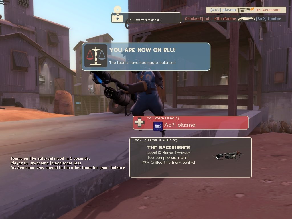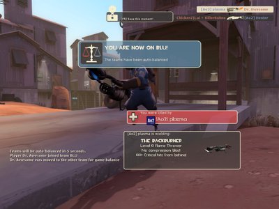 Aquí puede verse el algoritmo de autoequilibrar equipos en acción, así como los items especiales. En este caso, el Backburner, un lanzallamas para el pyro.