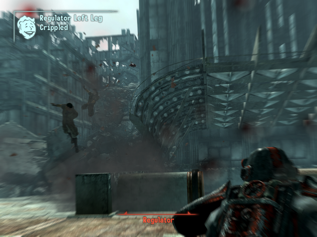Al principio, pensaba que el VATS era una excusa para aplacar a los rabiosos fans de Fallout de reflejos atrofiados, incapaces de disparar si no era eligiendo cuidadosamente la parte del cuerpo a la que querían disparar, tomándose todo el tiempo del mundo. Una especie de sistema de combate alternativo. No resultó ser así. Al igual que el fast travel, el VATS está inextricablemente unido a la estructura de Fallout 3. El VATS funciona como un ataque más a nuestra disposición, como si fuera el “tiempo bala” de Max Payne. Usarlo se convertirá en algo habitual, debido a cómo se comporta la puntería de las armas, y al efecto de cámara lenta, muchas veces el VATS será una opción mejor que disparar en modo tiempo real. El VATS no está carente de defectos, que conste. Pese a todas las opciones que nos ofrece para disparar a los enemigos, y aunque podemos incapacitar los brazos o las piernas de estos, obteniendo diferentes resultados, la única forma de neutralizar a un enemigo es matándolo, con lo que las opciones tácticas óptimas se reducen simplemente a disparar al torso (mayor probabilidad de acertar) o a la cabeza (mayor daño por disparo). Si decidimos desarrollar la puntería de nuestro personaje, al cabo de unos pocos niveles éste será una máquina de hacer headshots y gracias a la efectividad del VATS malgastaremos muy pocas balas en combate.