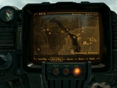 Podemos consultar mapas y datos en nuestro PipBoy y viajar directamente al lugar que elijamos.