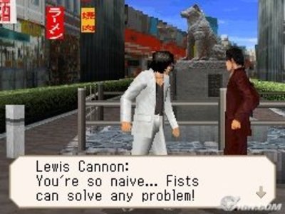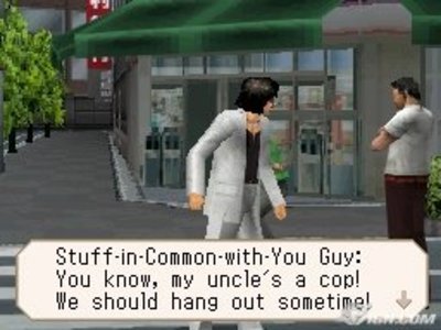 Por lo demás el juego se mantiene simple. Las misiones son lineales y transcurren en barrios de Tokyo determinados como Shibuya o Shinjuku. Antes de cada una vemos un mapa en el que están señalados los barrios disponibles en cada momento, los cuales podremos visitar sin oposición hostil antes de iniciar la misión, si nos apetece. el beneficio es que a veces nos encontraremos con unos viejetes con nombres como Maestro of Legend o Elder of The Mall que nos meterán en una pelea con condiciones para recompensarnos con los chalecos y pergaminos mencionados. Y aprovecho para decir que los nombres de los NPC’s se las traen: “Mujer con los Brazos Cruzados”, “Hombre Mal Informado” u “Hombre Emocionado por el Accidente” son solo algunos ejemplos de nombres acordes con el sentido del humor del juego, todos ellos completamente distintos entre sí, pues hay cientos de ciudadanos con los que hablar y cada uno tiene su nombrecito de marras acorde con su actitud, personalidad o profesión.