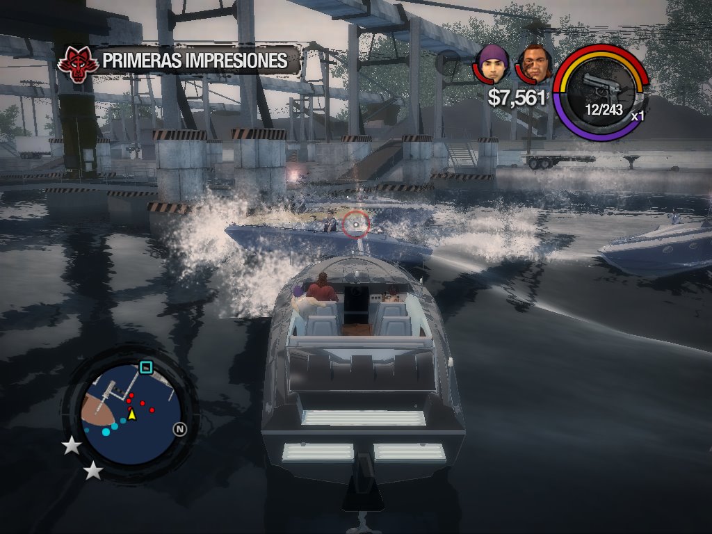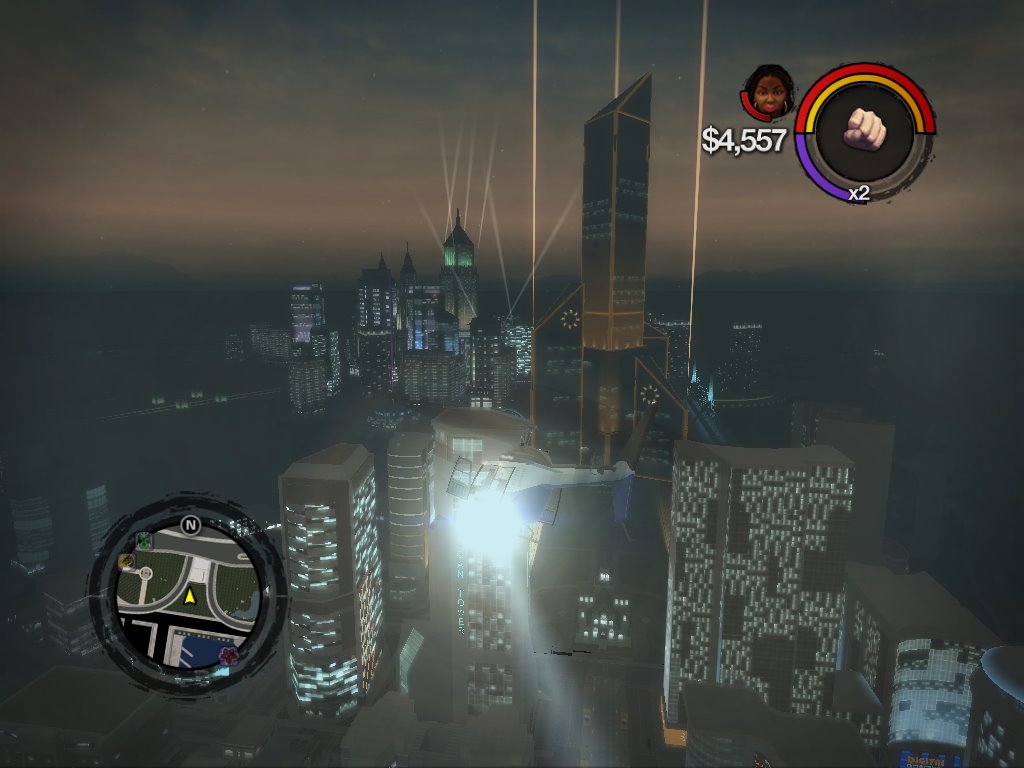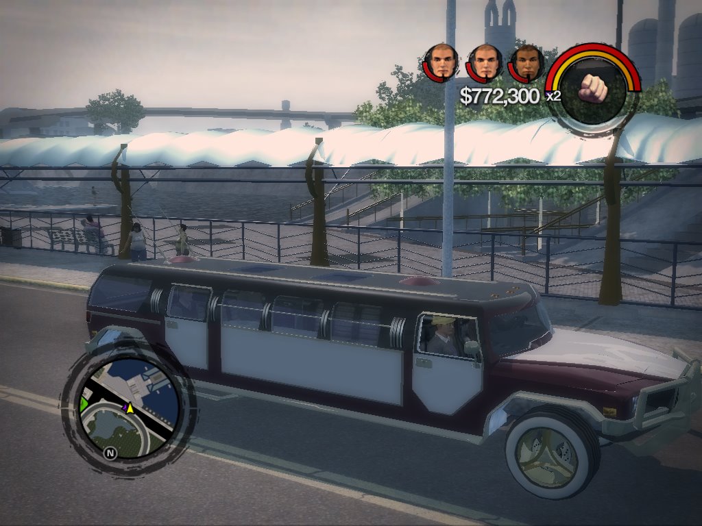 Mete a un jugador en un mundo abierto repleto de armas, vehículos y cientos de personas vulnerables. Lo primero que se le pasa por la cabeza es ver hasta dónde puede llegar masacrando gente a balazos y atropellos. Intentará comprobar hasta dónde puede saltar con un coche deportivo a toda velocidad, a cuánta gente a la vez puede prender fuego con un cóctel molotov o en el centro de qué pacífico vecindario podrá aterrizar un avión, por mencionar sólo algunas ideas. Los GTA intentan limitar esto restringiendo el acceso del jugador a ciertas zonas de la ciudad que tiene que desbloquear cumpliendo misiones, impidiéndole llegar hasta vehículos como helicópteros, aviones o lanchas, que le ofrecen una gran libertad de movimiento. Que le den por el culo a eso, Saints Row 2 te permite coger un helicóptero desde el primer momento que pones un pie en la ciudad que, por cierto, está disponible en su totalidad desde el principio. No es que nada más llegar lo tengas delante de ti, esperándote, pero no hace falta ser muy listo para darte cuenta de que si te das un garbeo por el aeropuerto te acabarás encontrando con uno… o con un jet privado.
