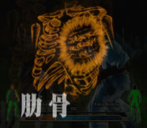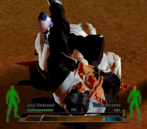 Volvamos, pues, a estos movimientos de desesperación especiales. A cada lado de la barra de espíritu hay tres iconos de cadena. Cuando la barra cruza el icono la cadena se rompe, y el luchador puede hacer el movimiento especial. Cuanto más cerca de la derrota esté la cadena en la barra, más poderoso es el movimiento. Sólo tenemos una oportunidad para usarlo. Acierte o falle, no podremos volver a usar ese golpe hasta el próximo combate. También, si no lo usamos y nos hacen suficiente daño como para romper otra cadena de nivel mayor, perdemos la posibilidad de usar el golpe (queda sustituido por el golpe correspondiente al nivel de la última cadena en romperse).