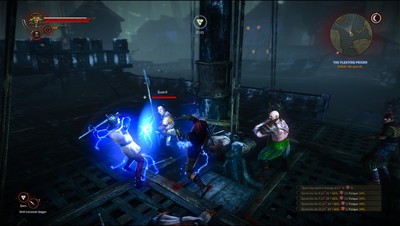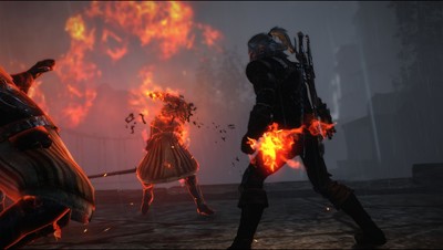 Oh sí, atrás quedaron las secuencias de clicks sincronizados de la primera parte, así como la pausa en combate y los diferentes estilos de lucha. Esta vez tenemos un sistema mucho más dinámico. Geralt desenvaina y se encara con el enemigo frontal más cercano. La manera de seleccionar el objetivo no podía ser más sencilla: mueve ligeramente la cámara hasta que el enemigo quede centrado en tu visión. Usa un botón del ratón para ataque rápido y otro para ataque fuerte. Con el teclado bloquearemos, esquivaremos y activaremos las señales. La combinación de estos elementos de una manera rápida y eficiente es la clave de la victoria. Este sistema hace que el combate vaya muy rápido, por lo que cualquier enemigo es una enorme amenaza para Geralt. Incluso los simples drowners, que en la primera parte eran poco más que carne de cañón, se vuelven durísimos si no se reacciona rápidamente a ellos, y con los medios adecuados. Atráelos de uno en uno cuando sea posible, dales golpes rápidos, paralízalos con la señal de Aard y remátalos. ¿Enemigos con escudos? Usa fuego, para sus ataques con la espada y éntrales con un golpe fuerte cuando se tambaleen por el impacto de los aceros. Cada tipo de enemigo requiere diferentes estrategias, y encima todo cambia cuando se lucha contra grupos.