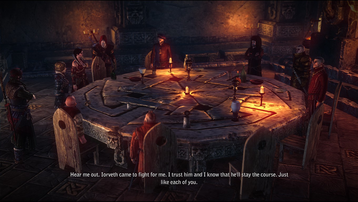 Aquí empieza el primero de tres extensos capítulos. Cada uno se sitúa en una zona con múltiples áreas para explorar. Y no exagero cuando digo que son realmente enormes. Solo podremos avanzar en la historia cuando vayamos completando fases de la misión principal, pero esta a su vez requerirá otras misiones paralelas para poder avanzar. Y por supuesto hay numerosas misiones secundarias a mayores. No faltan oportunidades para invertir horas en The Witcher 2 y mejorar las habilidades y equipamiento de Geralt. En este primer capítulo, desembarcamos en Flotsam, un pueblo pequeño que vive del comercio a través del río, lo cual se ha visto paralizado por la aparición de un monstruo acuático gigantesco. Por si eso no bastara, el líder local es un cacique que abusa de su poder para lucrarse (sacando partido al bicho) y los bosques cercanos ocultan un regimiento de Scoia’tael. Oh sí, los terroristas élficos de la primera entrega están de vuelta y con más ganas de leña que nunca. Precisamente su líder será uno de los personajes clave del juego: el amargo y retorcido Iorveth.
