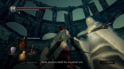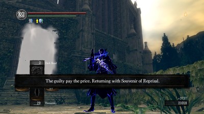 Evidentemente esto hace que los combates contra enemigos controlados por humanos sean extremadamente frustrantes si no se dispone de una conexión perfecta como la que disfrutan en Japón. Por suerte, hay una forma de optar por no ser invadido. En forma de hollow podemos ofrecer nuestra ayuda y ser invocados a otros mundos, pero no podremos invocar en el nuestro o ser invadidos hasta que recuperemos forma humana. Aparte de eso la interacción online que permanece siendo hollow es la de poder ver los mensajes dejados en el suelo por otros jugadores que contienen pistas que nos ayudarán en la aventura, o engaños que nos harán perder el tiempo. Estos mensajes usan el mismo sistema que en Demon’s Souls. Son construidos a partir de estructuras y palabras predefinidas. Esto permite, entre otras cosas, que sin importar en qué parte del mundo un jugador esté escribiendo una pista, esta aparecerá localizada para los demás al idioma en que estén jugando.