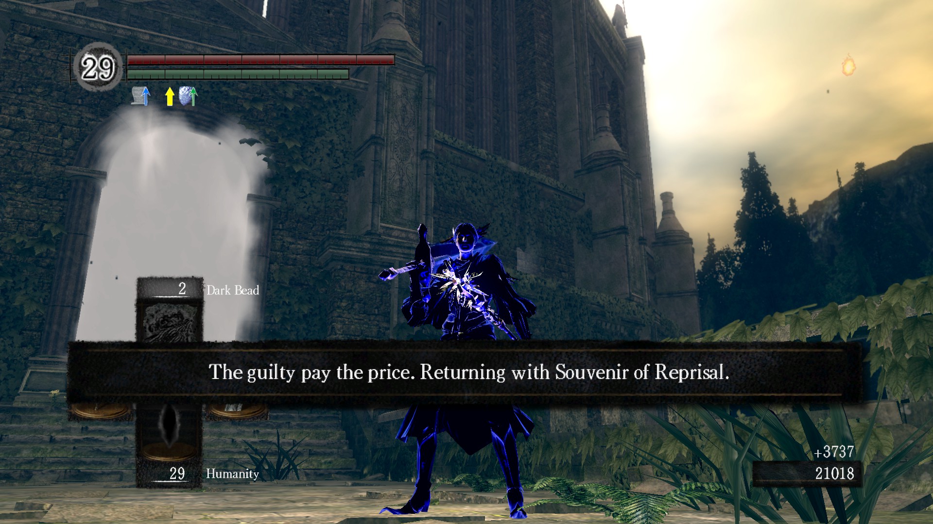 Si tenemos dificultades para atravesar un nivel o derrotar a un jefe, siempre podemos quemar una humanidad en la hoguera e invocar a espíritus amistosos