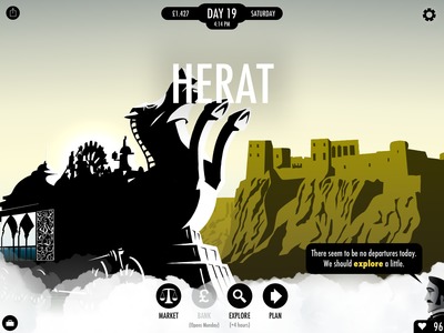 Aún así, no todo es pura narración. 80 Days incluye un barniz de mecánicas de juego que lo ponen por encima de un básico “escoge tu propia aventura”. Passepartout debe gestionar los recursos del viaje para que su amo gane la apuesta. En términos esenciales esto se traduce en tiempo, dinero y el estado de salud de Fogg. Si vamos un paso más allá, se trata fundamentalmente de tiempo. Phileas Fogg es rico, y no reparará en gastos para su viaje. Sin embargo, la cantidad de dinero que podemos llevar encima en un momento dado es limitada. En cualquier ciudad podemos retirar cierta cantidad de los bancos, pero esto cuesta tiempo, y cuanto más alta sea la cantidad de la transferencia, más tiempo requiere que el banco la apruebe lo que nos puede costar preciosos días. Eventos en la historia pueden hacer que el efectivo en nuestra cartera cambie, ya sea perdiendo dinero si somos asaltados, por ejemplo, o ganando algo de calderilla si ayudamos en algún trabajo aquí y allá. Todas estas opciones son, en su mayor parte, cosméticas ya que salvo excepciones tienen poco impacto en nuestras finanzas. La forma más eficiente de mantener nuestra cartera bien llena es adoptando el rol de mercader.